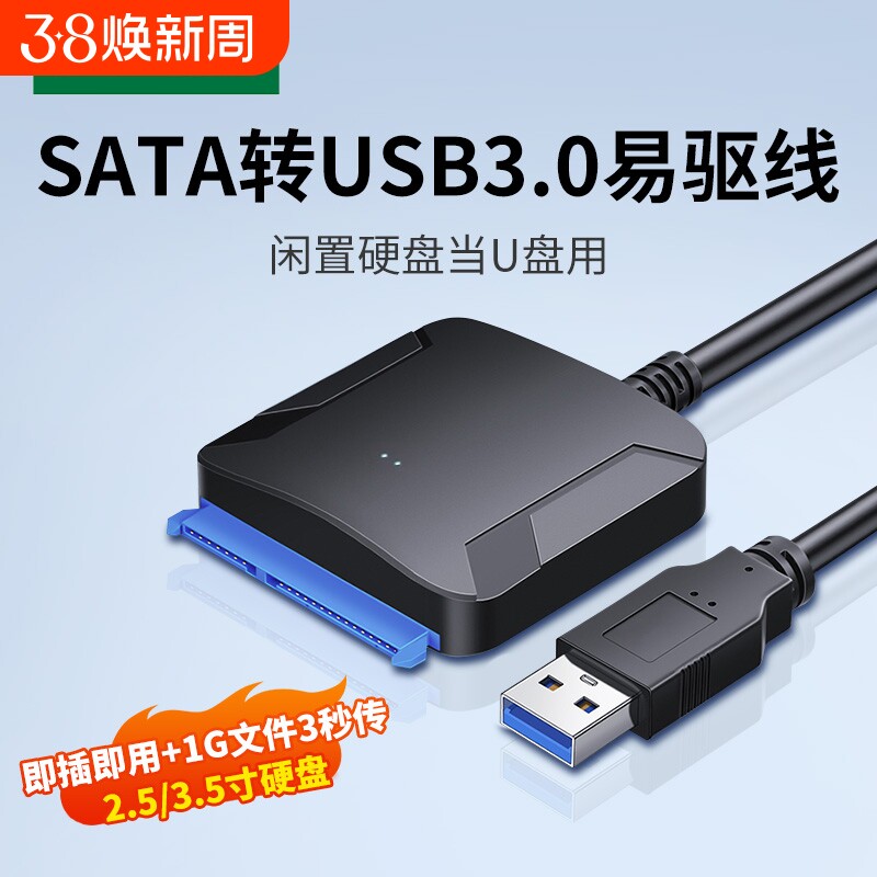 绿联sata转usb3.0硬盘数据转接线易驱线外置接口2.5/3.5英寸台式机笔记本电脑连接光驱机械SSD固态硬盘读取器