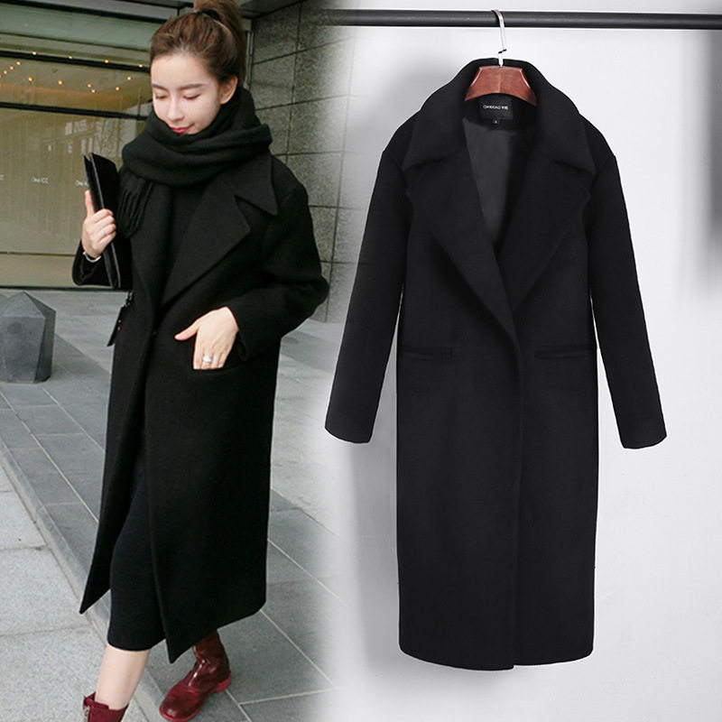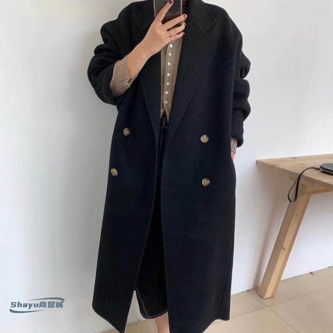 2025韩版黑色羊绒呢子大衣女冬韩国宽松茧型中长款过膝羊毛呢