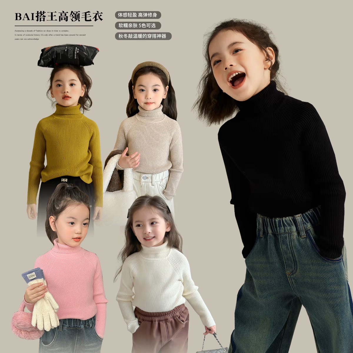 沫沫童装冬装女童打底针织衫2025秋冬季新款儿童高领洋气加厚毛衣