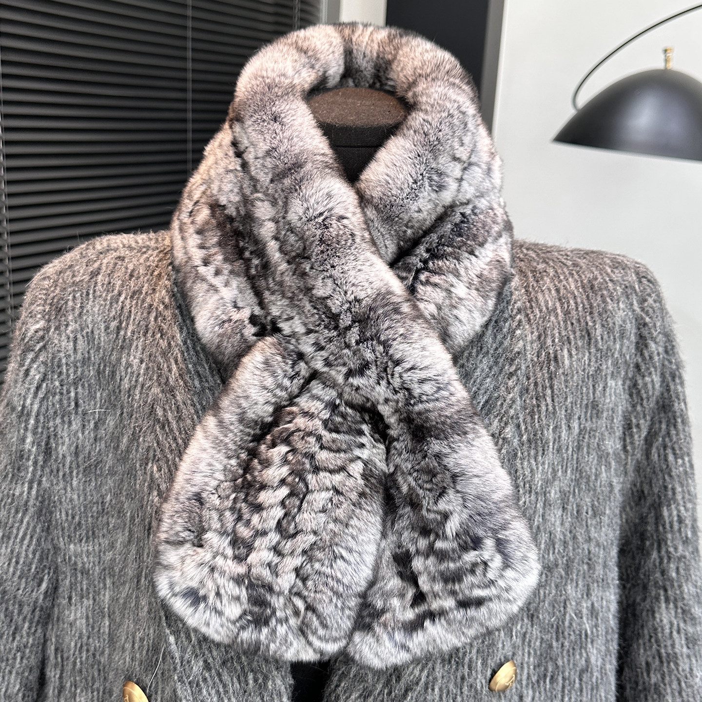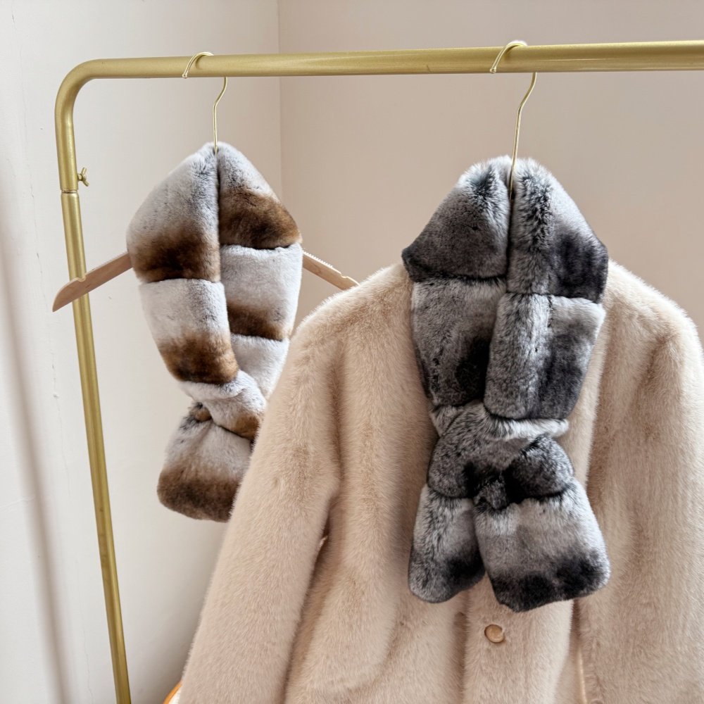 “龙猫色”双面獭兔毛围巾撞色丰盈温暖佰搭氛围感造型神皮草围脖