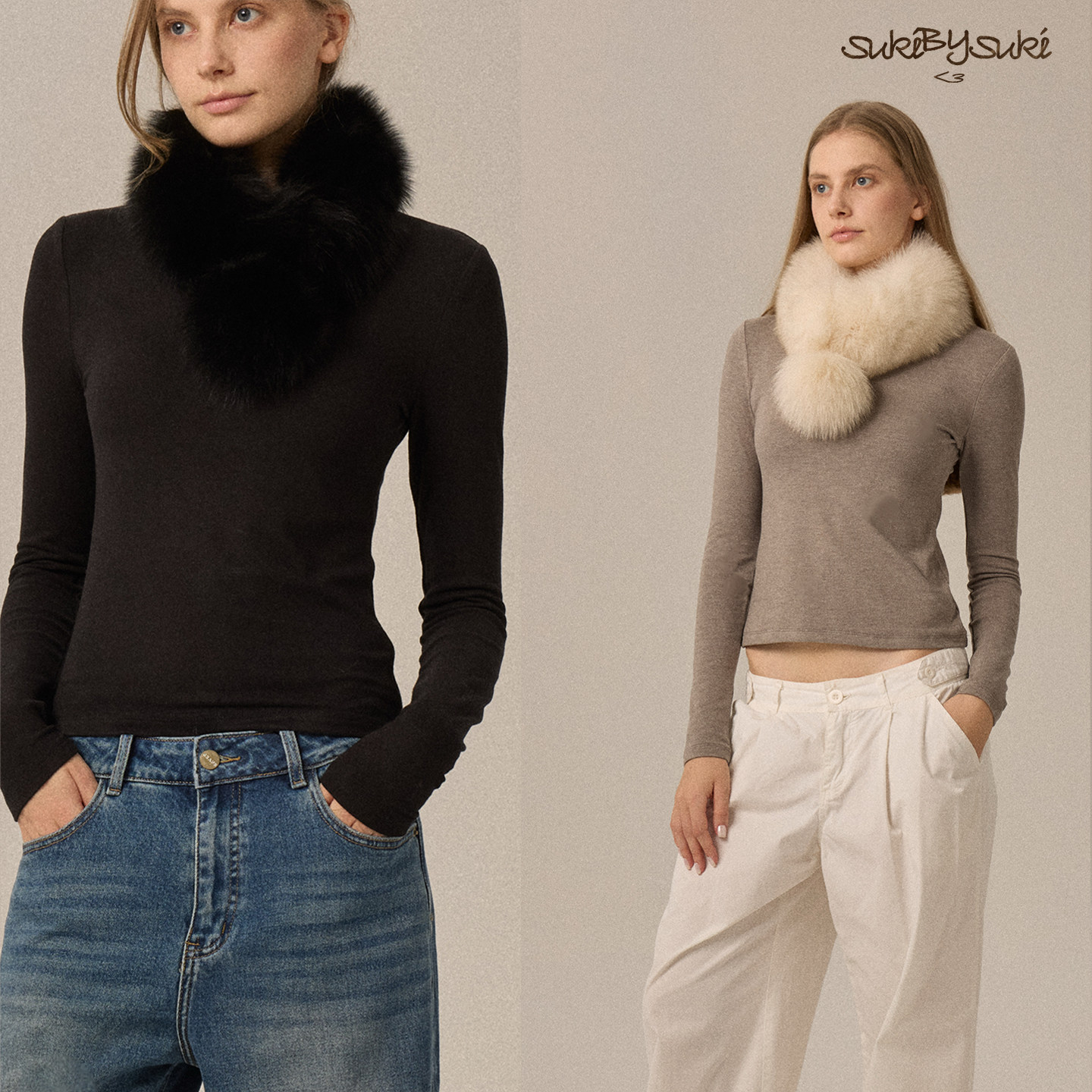 【黑色现货】SukiBySuki 双面进口狐狸毛球围巾保暖兔毛围脖