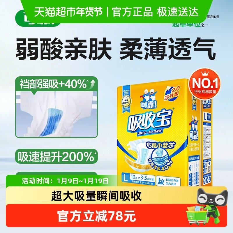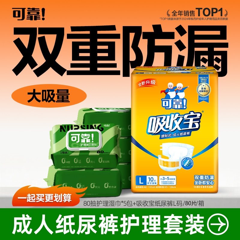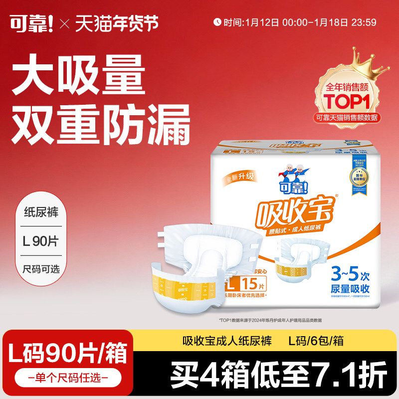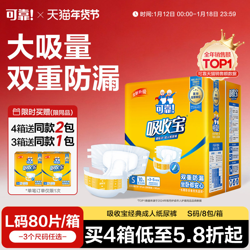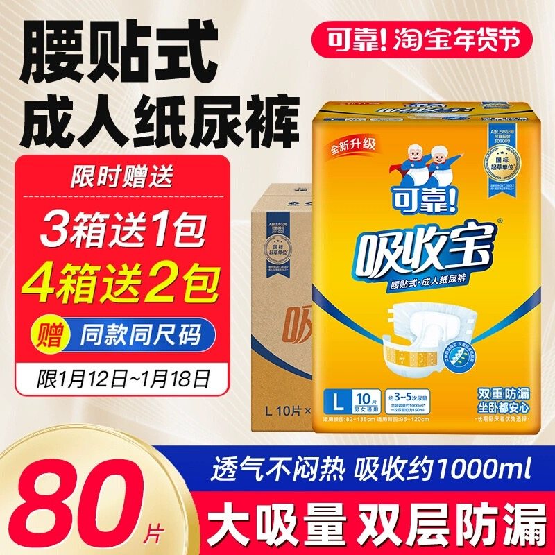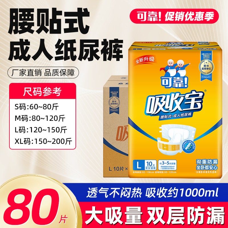 可靠吸收宝成人纸尿裤老年人尿不湿旗舰店同款大号L码80片经济装