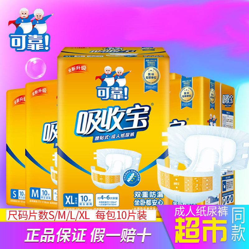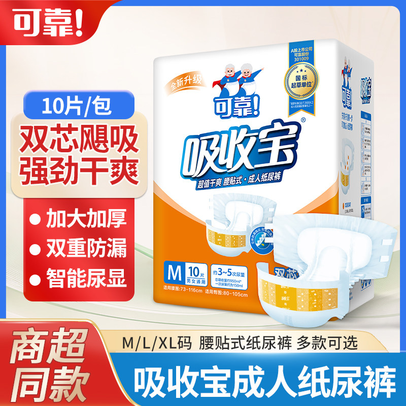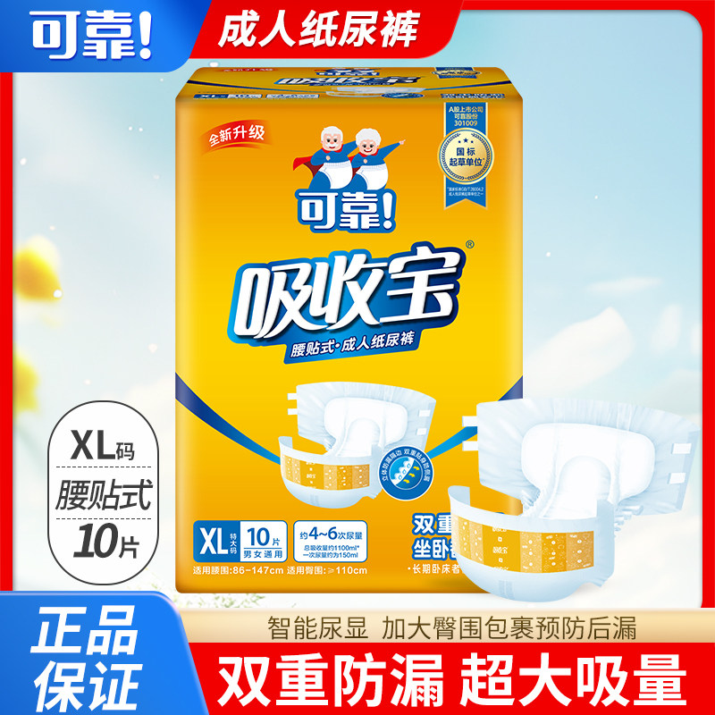 可靠吸收宝成人纸尿裤老人用尿不湿男女孕产妇腰贴式尿片10片装