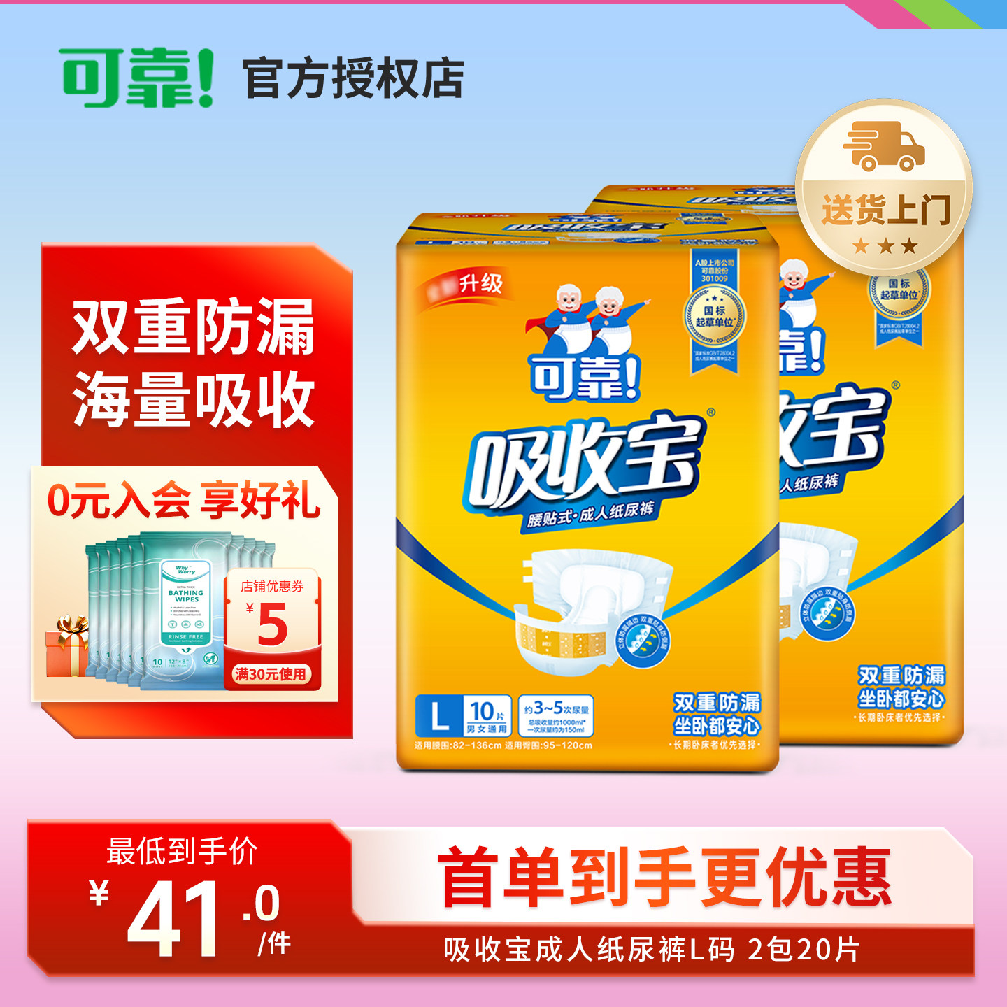 可靠吸收宝成人纸尿裤2.0老年人用尿不湿男女孕产妇尿垫尿片单包