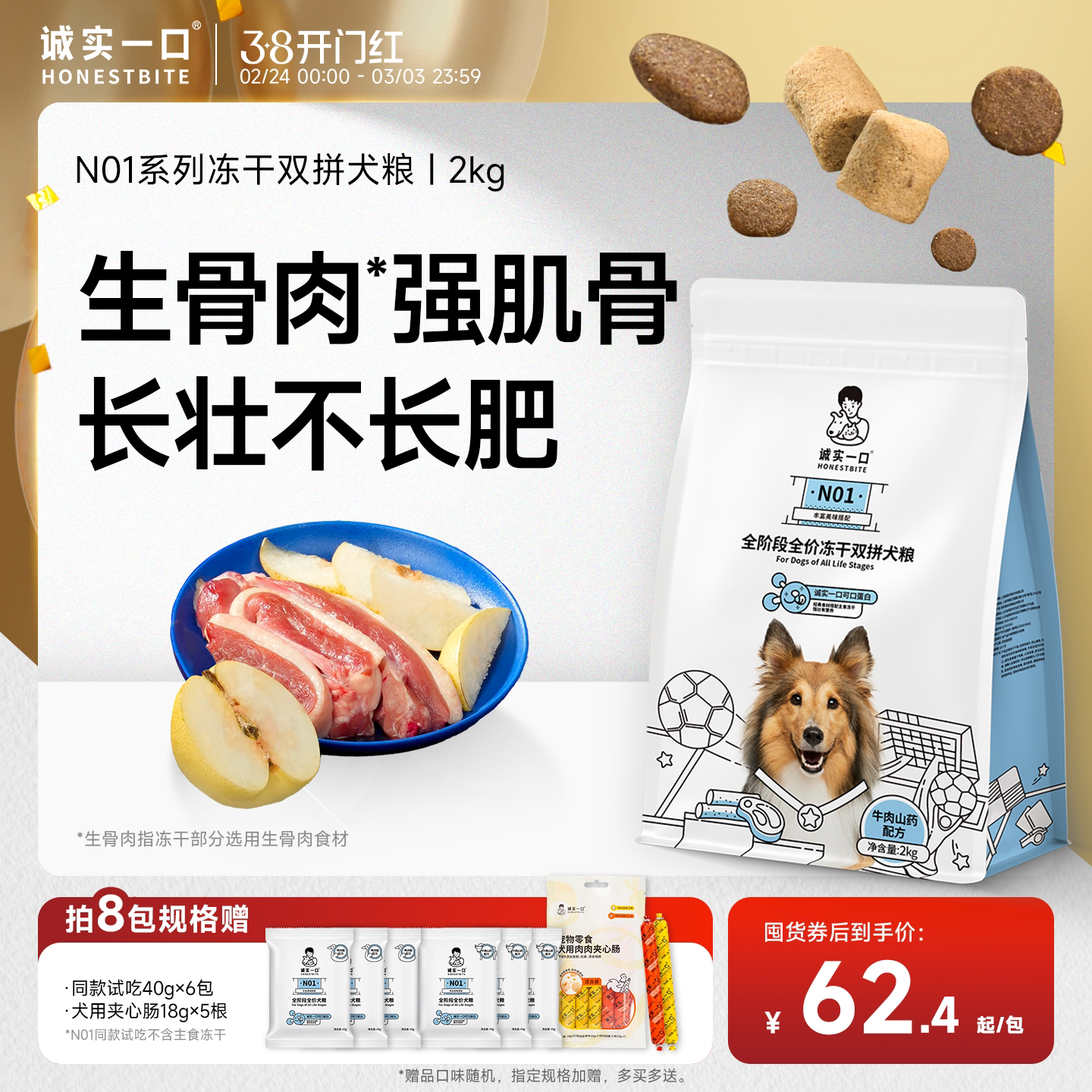 诚实一口N01冻干犬粮鸭肉梨淡泪痕小型大型犬幼犬狗粮官方旗舰店