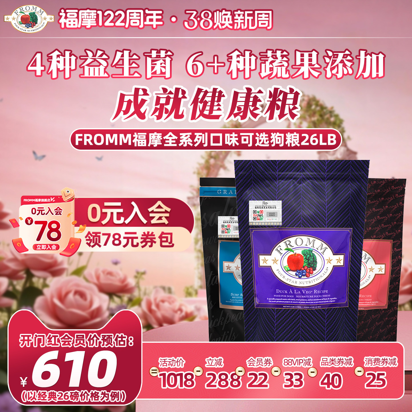 【官方旗舰店】FROMM福摩经典鸭肉甜薯蔬果梨减缓泪痕成幼犬狗粮