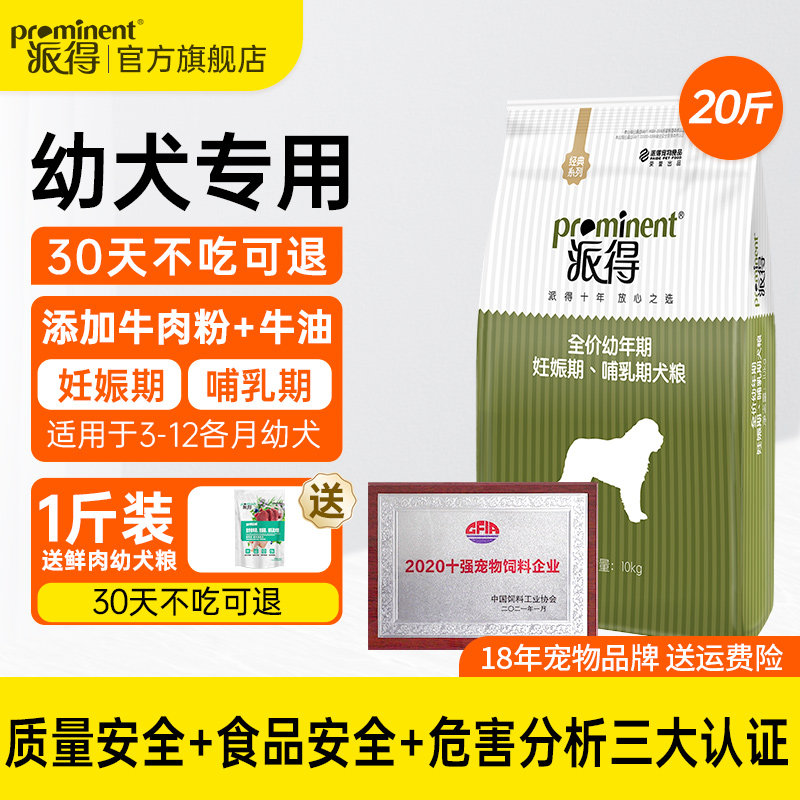 派得幼犬狗粮10kg公斤泰迪柯基萨摩拉布拉多金毛专用通用型20斤装