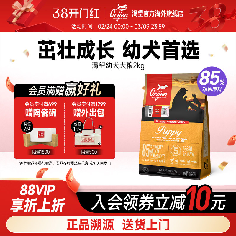 【官方旗舰】Orijen渴望幼犬狗粮专用进口全价无谷通用幼犬粮2kg