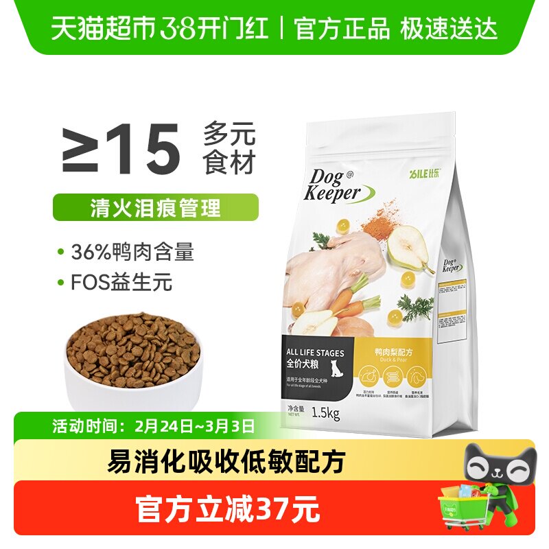 纯皓营乐多成幼犬狗粮鸭肉梨天然酵素全价全犬期通用型粮1.5kg