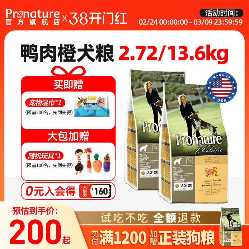 枫趣进口鸭肉橙犬粮金毛边牧小大型犬通用狗粮全价幼犬狗粮13.6kg