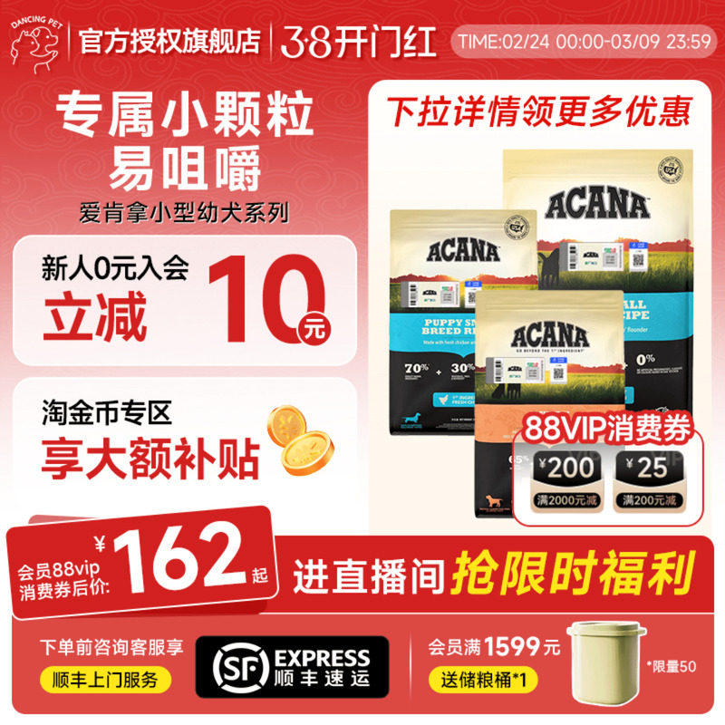 ACANA爱肯拿幼犬狗粮美国进口无谷鸡肉味小颗粒小型犬专用犬粮2kg