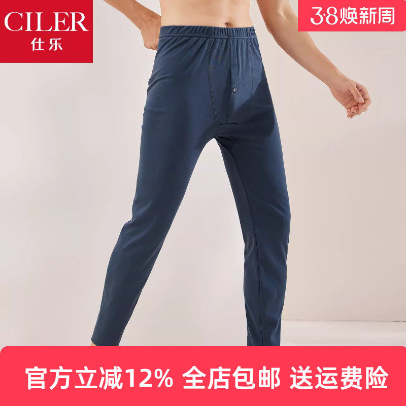 仕乐纯棉秋裤男薄款单件亲肤宽松加大码基础打底男士线裤衬裤内穿