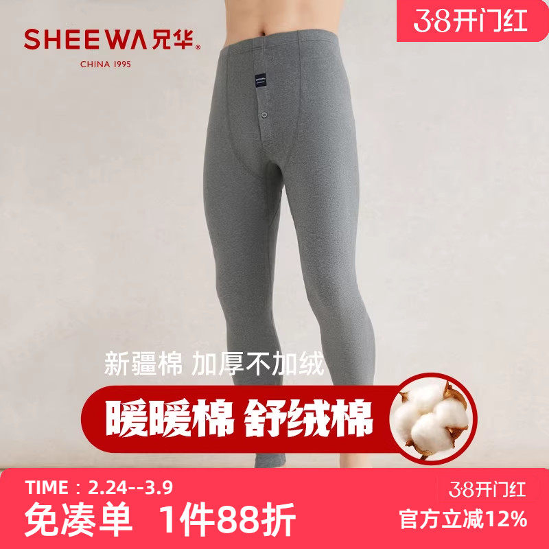 兄华内衣男士秋裤单件中老年纯棉男宽松保暖裤秋冬棉毛裤大码衬裤