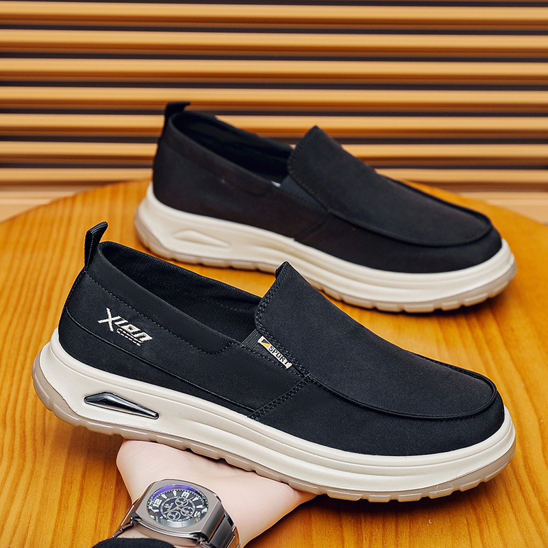 老人头潮流运动休闲鞋男2025新款平底健步鞋舒适一脚蹬男士布鞋
