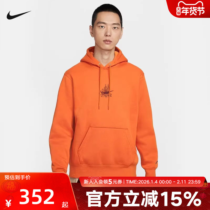 Nike耐克男子加绒卫衣冬季新款印花连帽保暖运动套头衫HV1217-893
