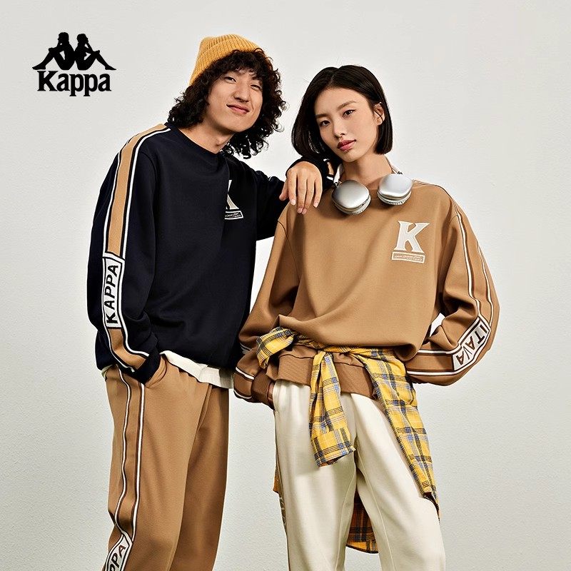 Kappa卡帕复古运动套头衫2025新款男女针织圆领卫衣拼色休闲长袖