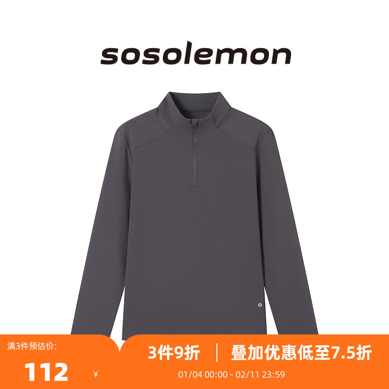 SOSOLEMON 半拉链运动套头衫长袖秋冬发热锁温立领男上衣T恤加绒
