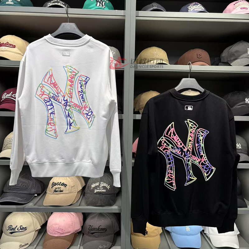 25新款MLB情侣卫衣男女NY彩色涂鸦印花圆领运动套头衫3AMTB0651