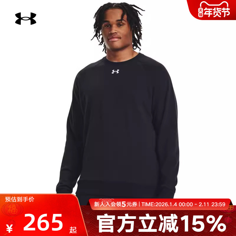 安德玛卫衣男士UA秋冬Rival抓绒圆领训练运动套头衫1379755-001