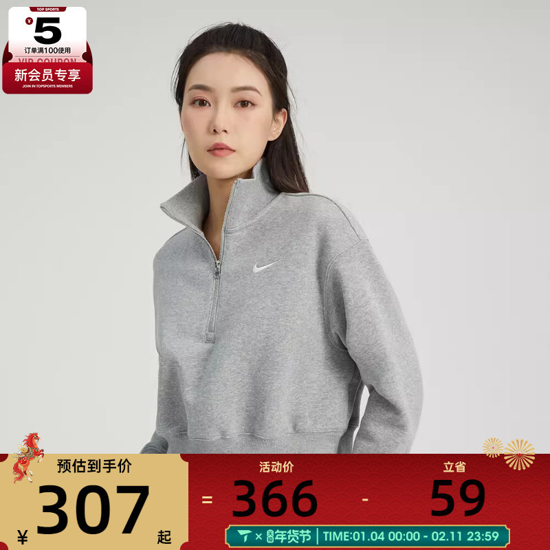 滔搏丨耐克女子休闲宽松舒适潮流时尚短款运动套头衫DQ5768-063