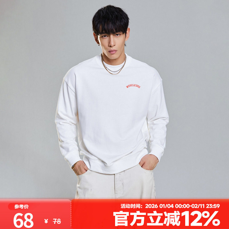 肌肉狗 圆领卫衣男秋冬美式印花宽松休闲训练上衣健身运动套头衫