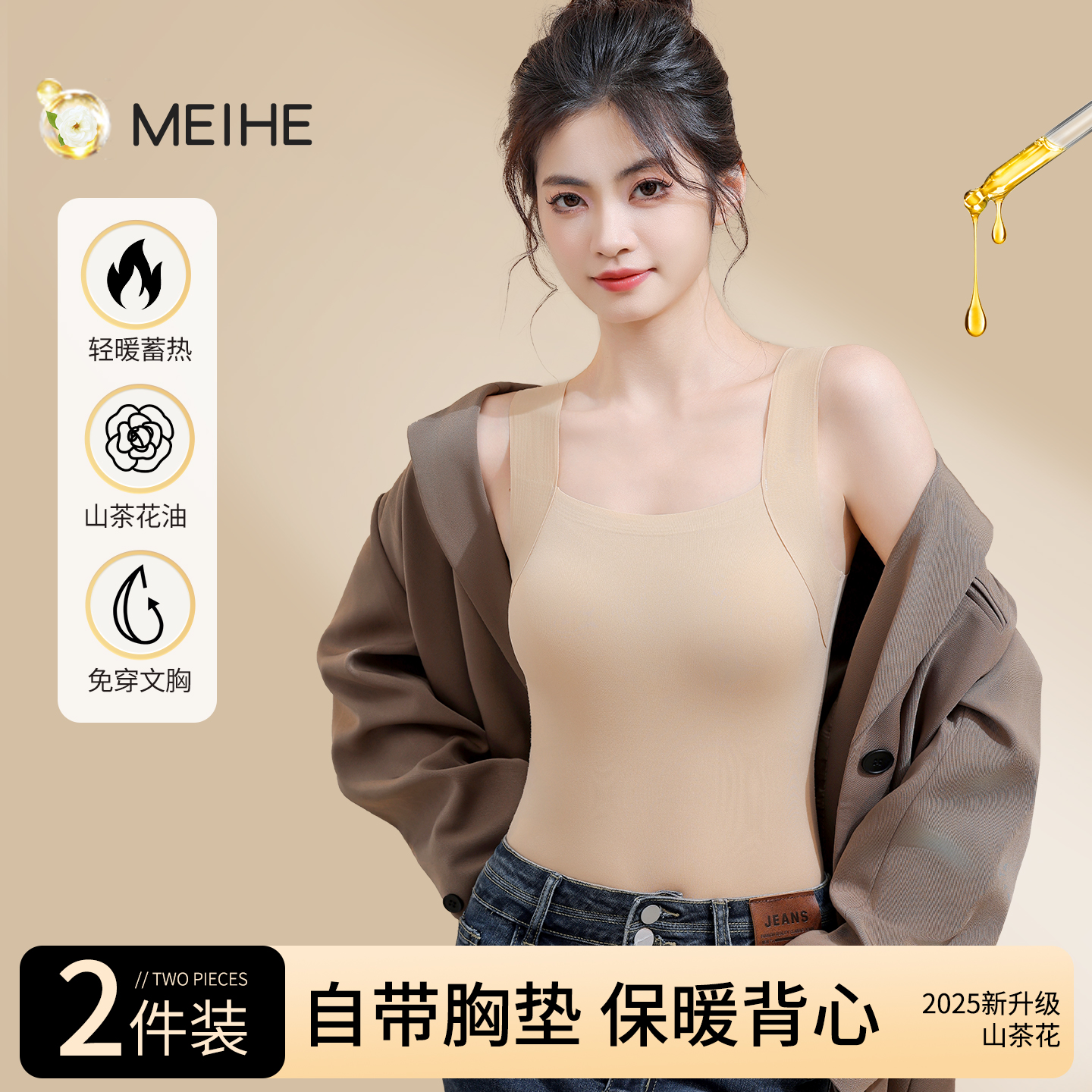 婷美保暖背心女内衣冬内搭加绒加厚2025新款免穿文胸塑形一体吊带