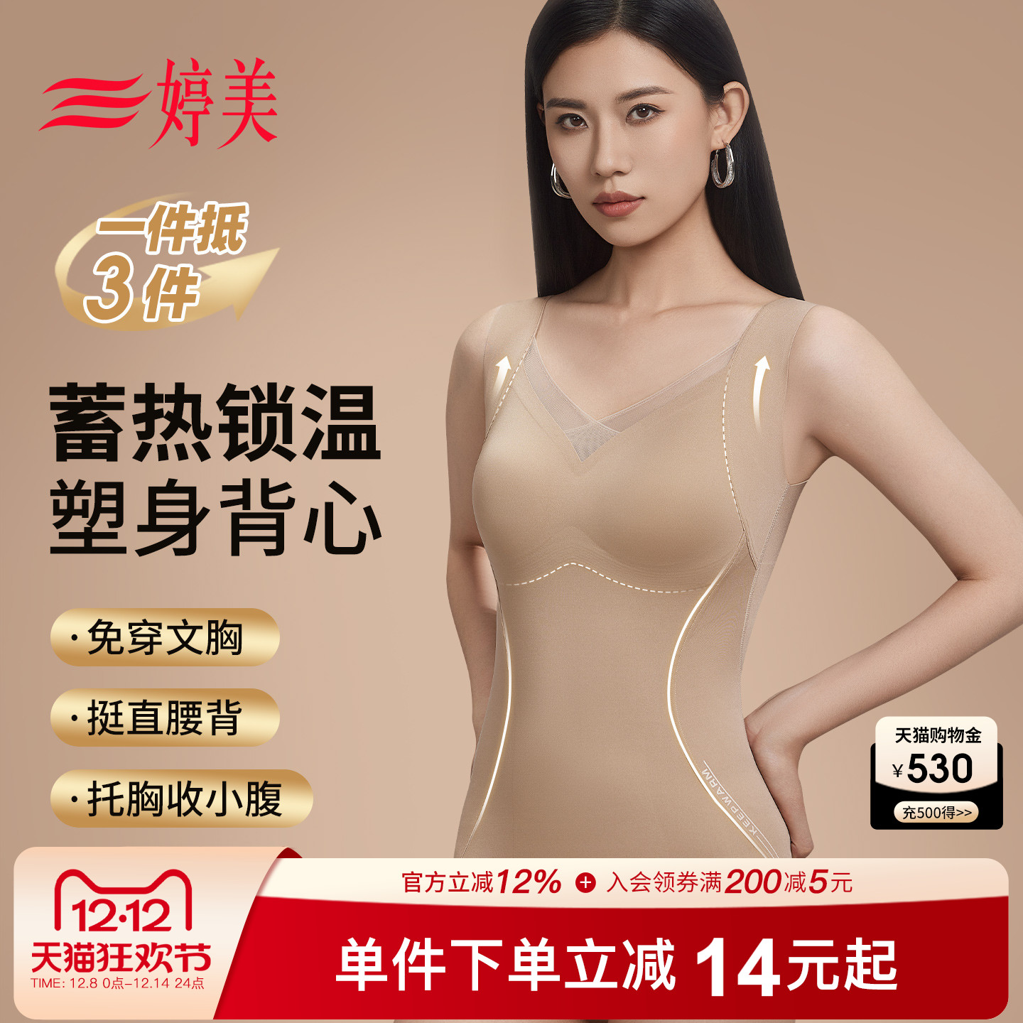 婷美粉底液隐形蓄热保暖背心女免穿文胸塑形收腹修身秋冬打底内衣