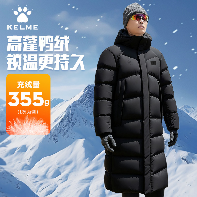 卡尔美羽绒服男长款过膝冬季连帽防风保暖加厚高充绒极寒羽绒外套