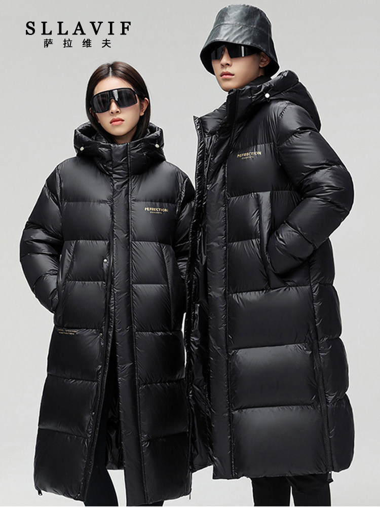 新款加长加厚羽绒服男长款过膝中长款情侣冬装男女宽松休闲连帽潮