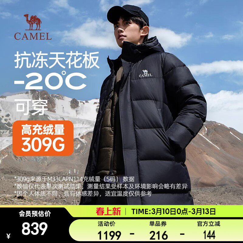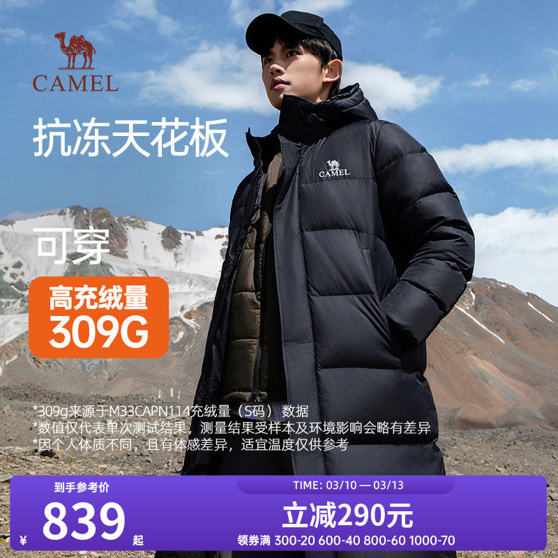 卡尔美羽绒服男长款过膝冬季连帽加厚保暖防风高充绒极寒羽绒外套