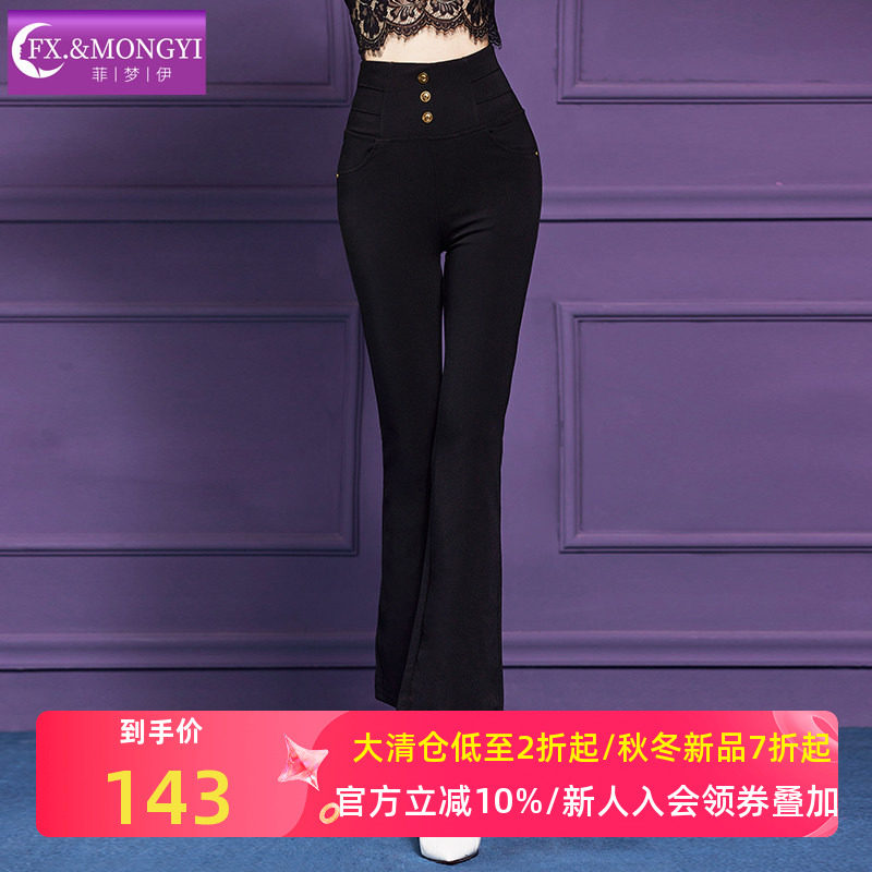 菲梦伊黑色西装裤女冬季垂感高腰显瘦修身喇叭裤设计感小个子长裤