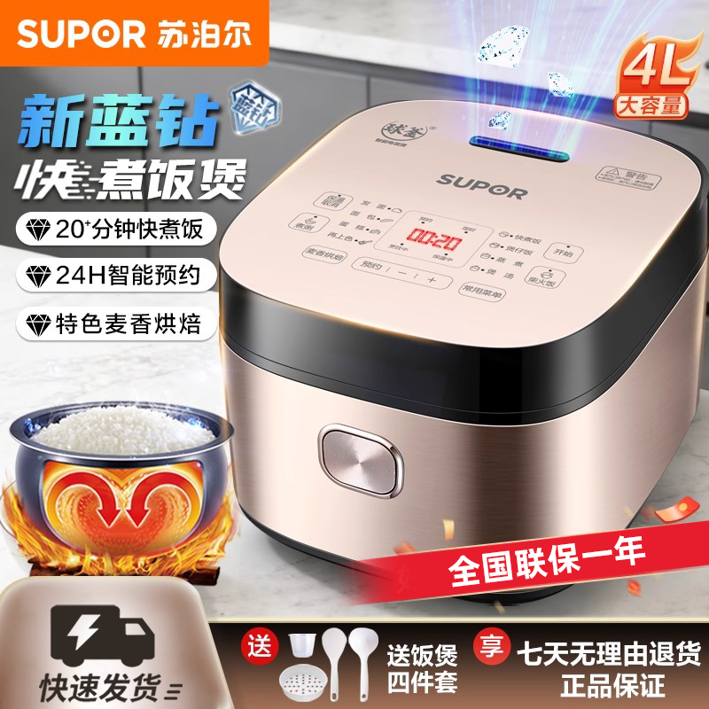 苏泊尔电饭煲家用电饭锅4L升快速多功能智能大容量柴火煮饭锅新品
