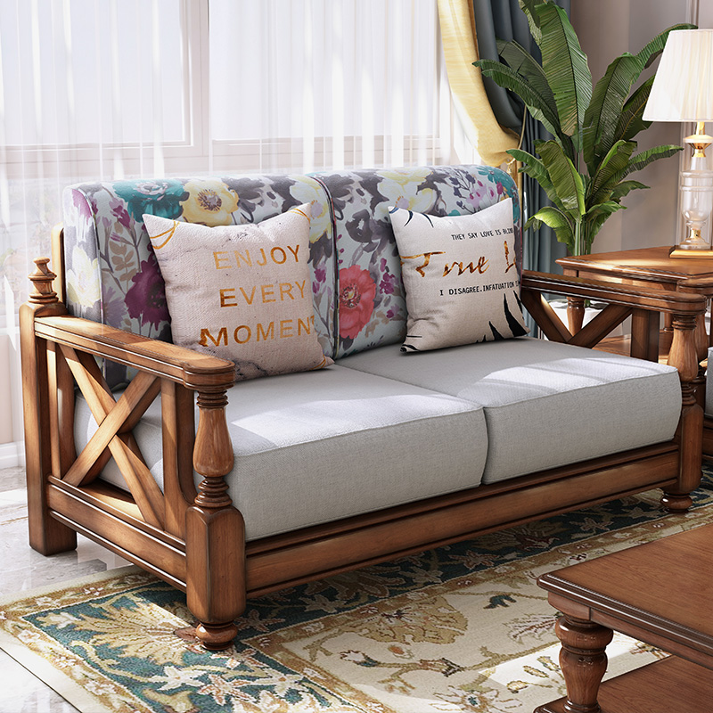 美式实木沙发布艺组合小美风格小户型客厅复古乡村田园风原木家具