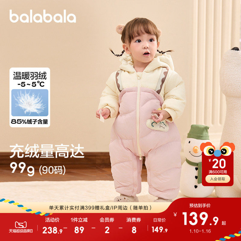 巴拉巴拉童装婴儿羽绒服连体衣宝宝男女童童装保暖造型萌趣时尚萌