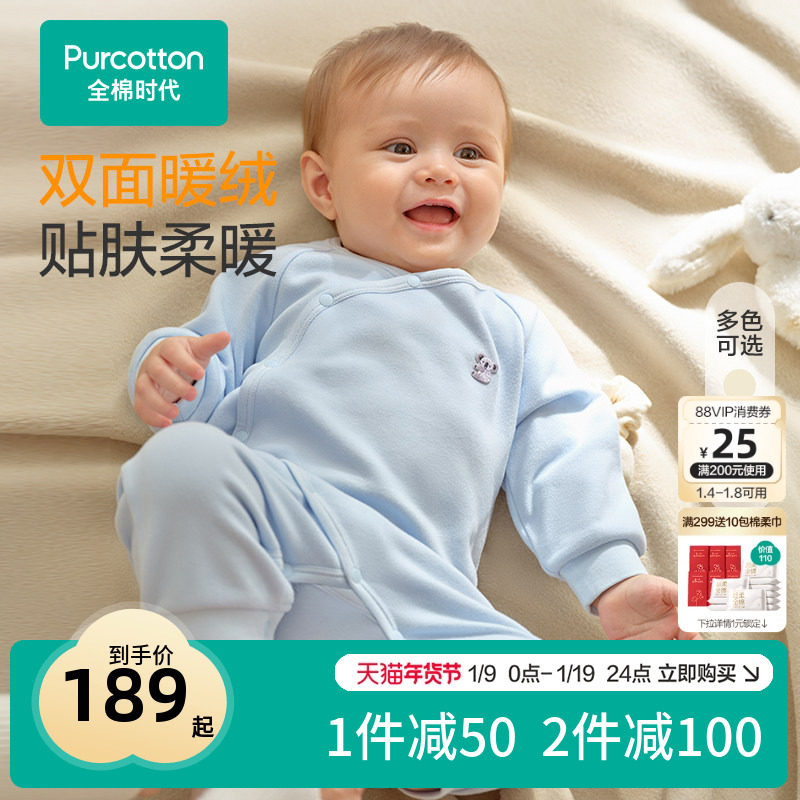 全棉时代婴儿衣服连体衣春秋装风柔棉暖绒满月男女宝宝冬季打底衣