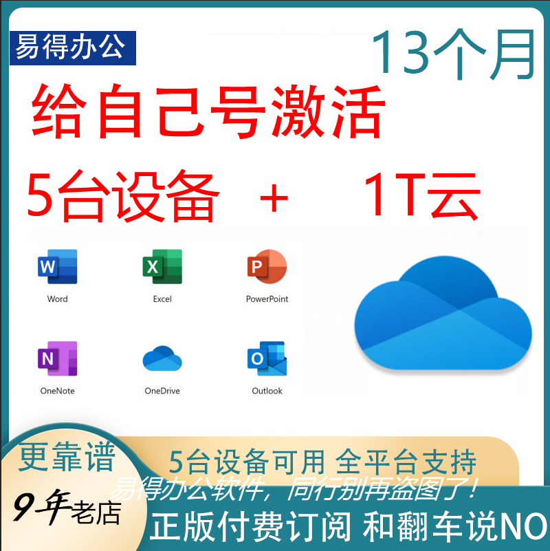 自动发 正版微软Office365家庭版1年充值订阅激活码Microsoft365