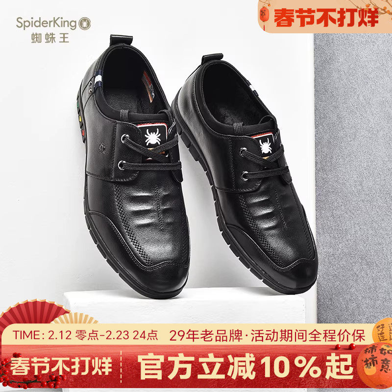 蜘蛛王男鞋2025新款秋冬皮鞋休闲系带男士皮鞋真皮舒适单鞋软底