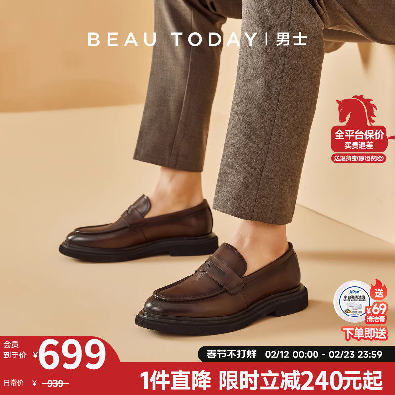 【商场同款】BeauToday厚底乐福鞋男一脚蹬商务休闲男士皮鞋真皮