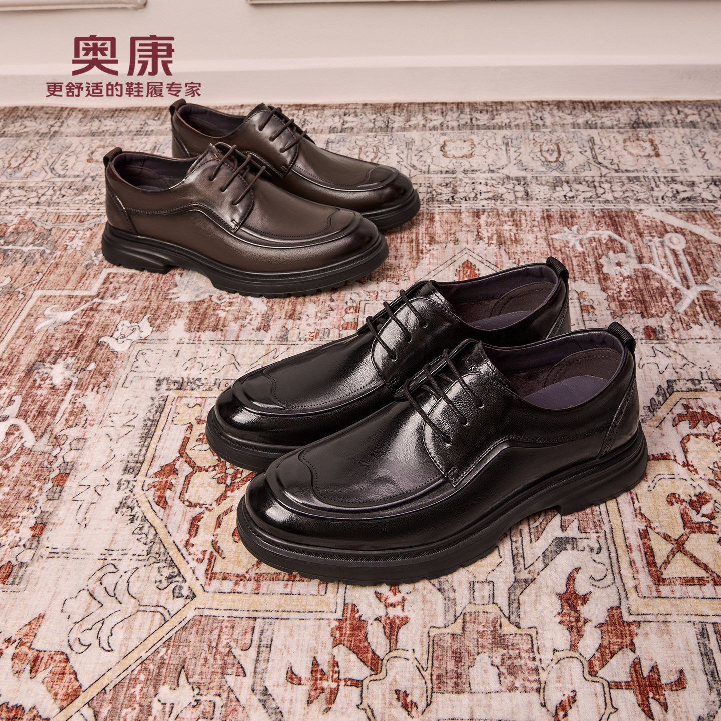 奥康 男鞋2025秋季男士皮鞋真皮德比鞋系带全黑公务皮鞋门店发货