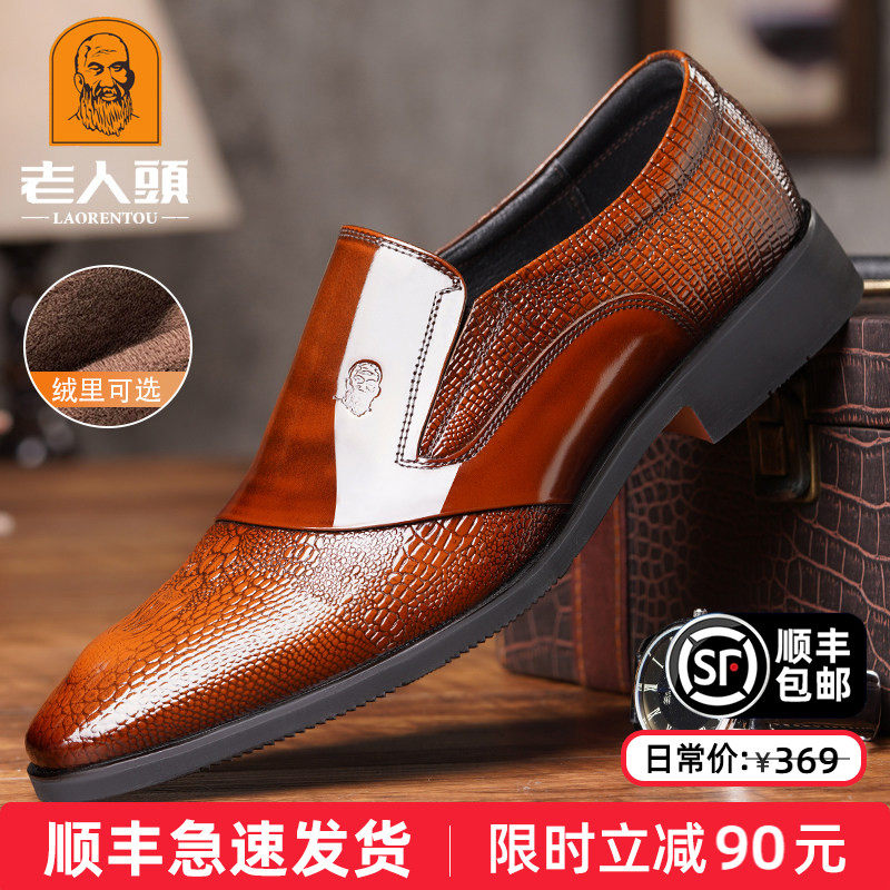 老人头男士皮鞋真皮商务皮鞋男透气软皮休闲皮鞋一脚蹬中年爸爸鞋