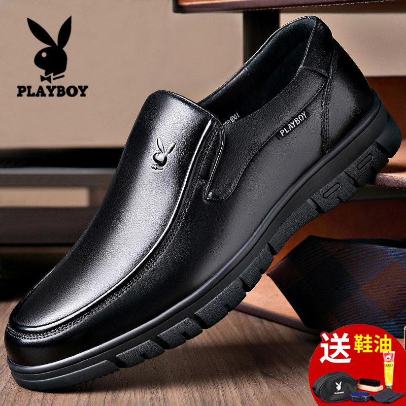 花花公子男士皮鞋真皮商务正装一脚蹬软底软面中老年爸爸休闲皮鞋