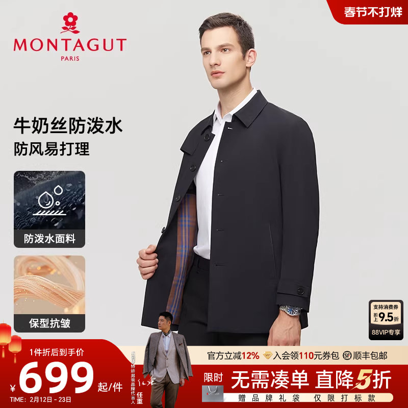 [三防小护盾]梦特娇男士中长款风衣26春季翻领夹克高端外套免烫J