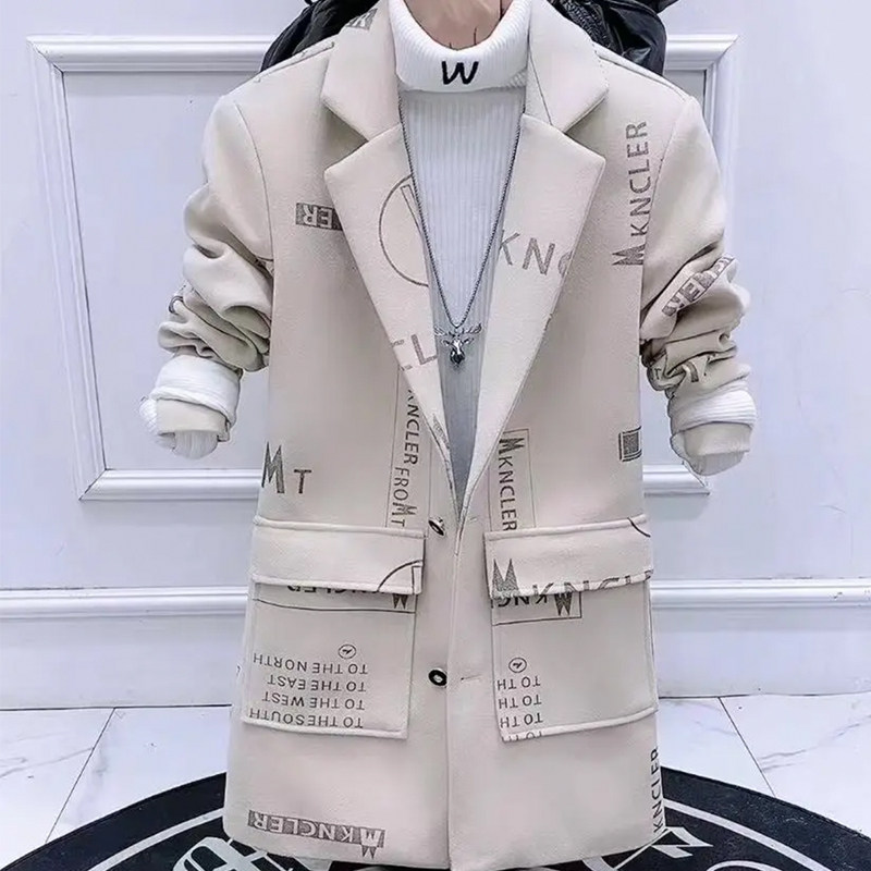 韩版炸街男士中长款风衣字母潮流时尚毛呢大衣新款个性冬季外套男