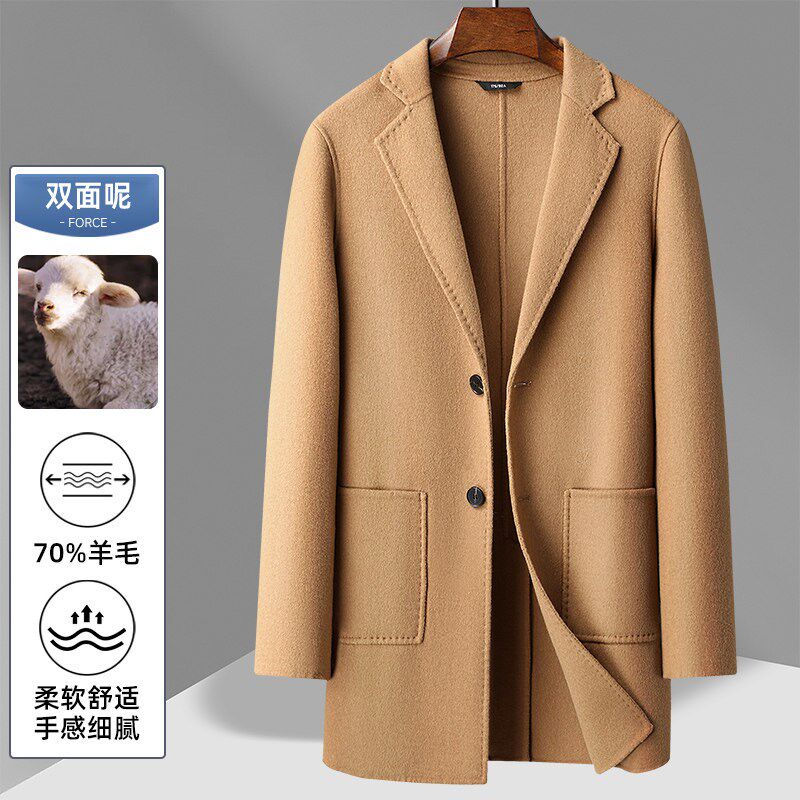 纯羊毛双面呢大衣男士 中长款过膝双面羊绒外套 西装领毛呢子风衣