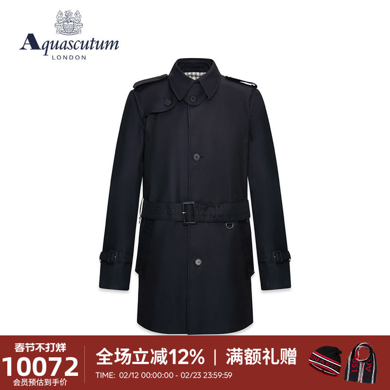 Aquascutum/雅格狮丹春夏新款男士中长款风衣大衣外套Q4901EM011