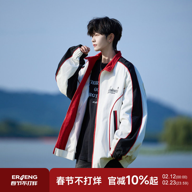 二更刺绣港风休闲夹克男2025新款春秋季撞色设计感青少年男生外套