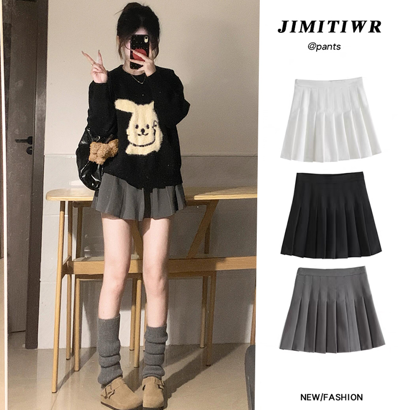 百褶裙女春秋季外穿2024新款高腰显瘦jk短裙学生小个子a字半身裙