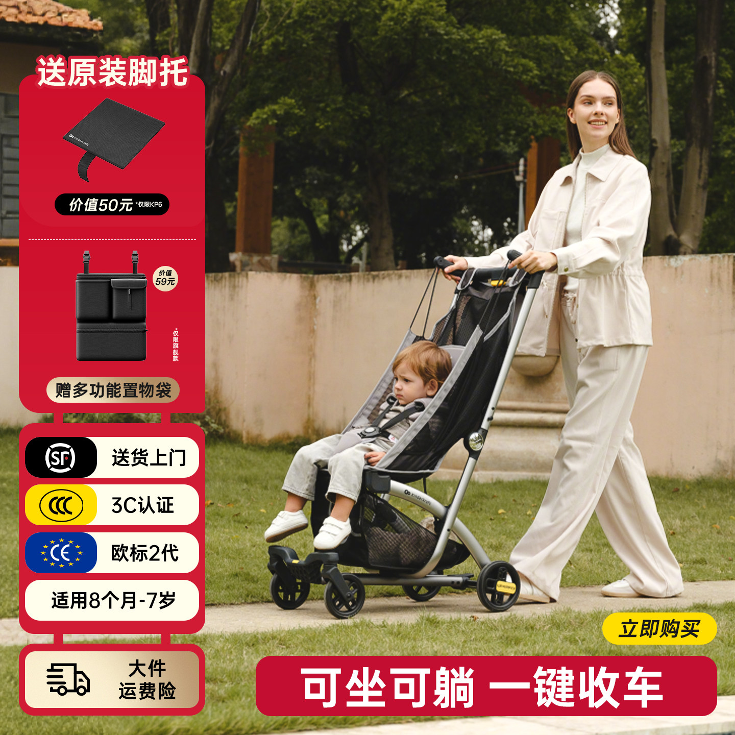 KK口袋可坐可躺遛娃神器一键收车婴儿推车宝宝大童伞车轻便可登机