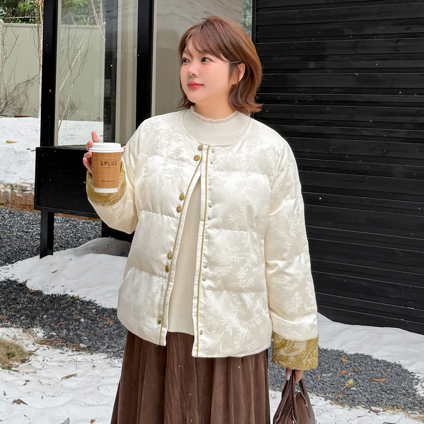 胖mm大码女装新中式短款棉服女2025冬季新款提花刺绣国风保暖外套