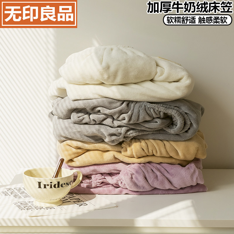 无印良品纯色牛奶绒床笠单件冬季加厚保暖法兰绒宿舍单人绒毯床罩